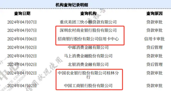 查询要求:一般情况要求近一个月查询不超4次,近一年查询不能太多;